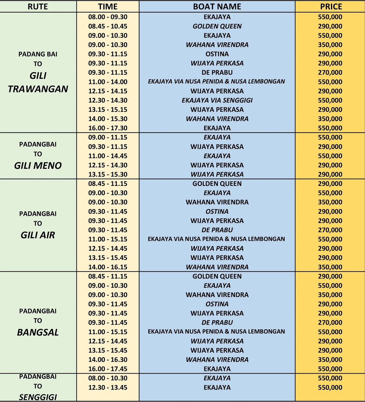 Eka Jaya Fast Ferry is one of the most reliable ferry service companies in Bali. The company is famous for the Gili fast ferry service between Bali, Gili Trawangan, Gili Meno, Gili Air, Bangsal and Lombok.