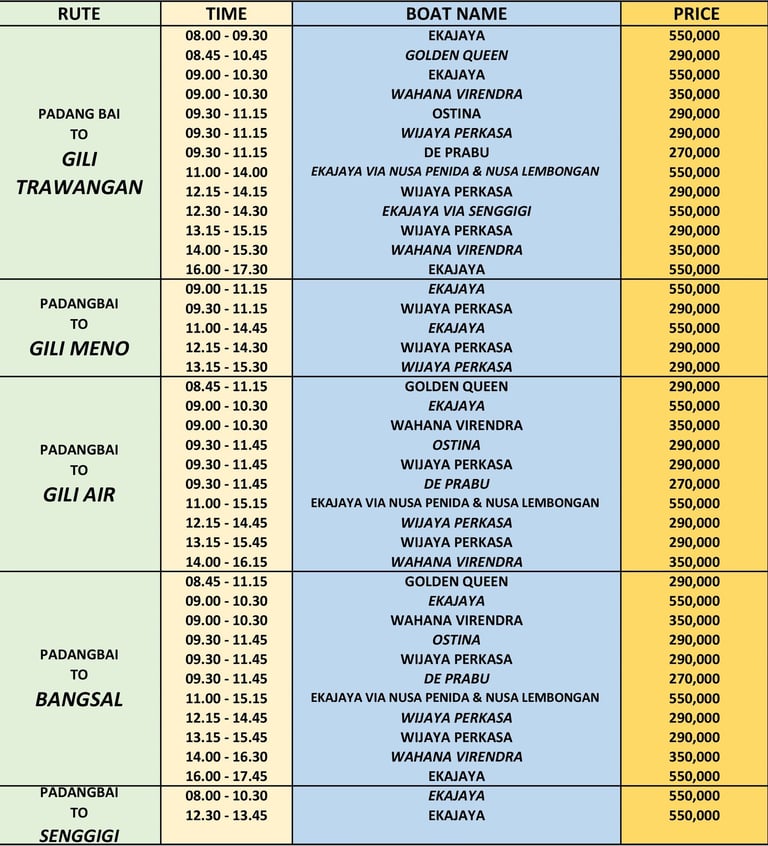 Is a maritime company specializing in speed boat transportation services, established in 2018. Our routes include departures from Padang Bai Bali to the Gili Islands and Lombok (Bangsal).